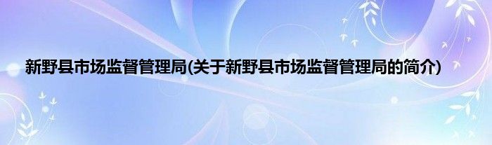 本文关于新野县市场监督管理局的简介就讲解完毕,希望对大家有所帮助。