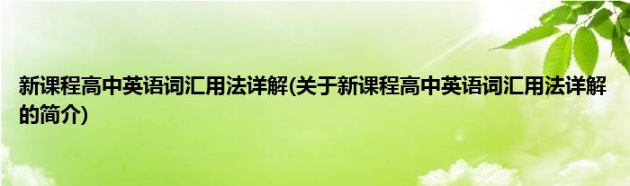 本文关于新课程高中英语词汇用法详解的简介就讲解完毕,希望对大家有所帮助。