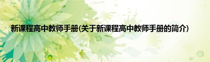本文关于新课程高中教师手册的简介就讲解完毕,希望对大家有所帮助。