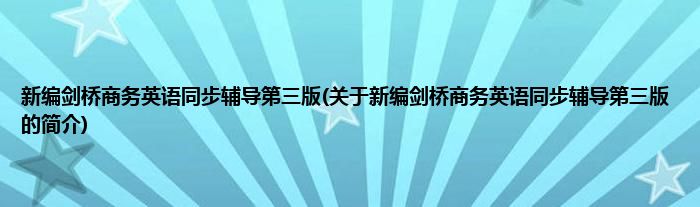 本文关于新编剑桥商务英语同步辅导第三版的简介就讲解完毕,希望对大家有所帮助。