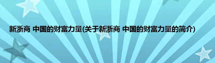 本文关于新浙商,中国的财富力量的简介就讲解完毕,希望对大家有所帮助。