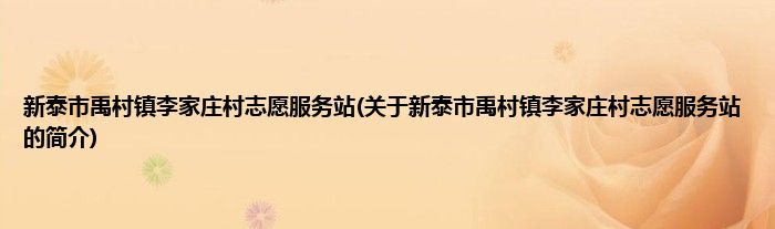 本文关于新泰市禹村镇李家庄村志愿服务站的简介就讲解完毕,希望对大家有所帮助。