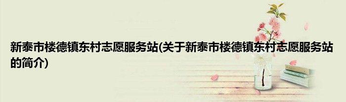大家好,新泰市楼德镇东村志愿服务站,关于新泰市楼德镇东村志愿服务站的简介很多人还不知道,现在让我们一起来看看吧!
