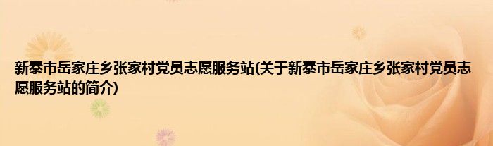 本文关于新泰市岳家庄乡张家村党员志愿服务站的简介就讲解完毕,希望对大家有所帮助。