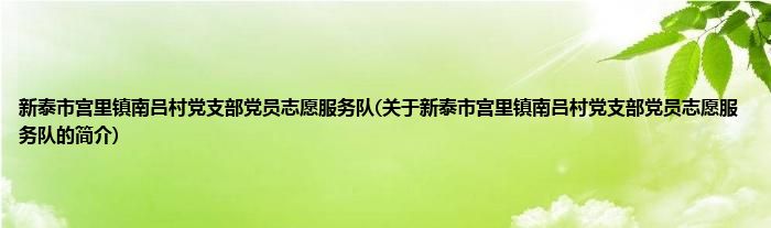 1、 新泰市宫里镇南吕村党支部党员志愿服务队是由新泰市党员志愿服务总队领导下的志愿团体。