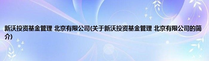 本文关于新沃投资基金管理 北京有限公司的简介就讲解完毕,希望对大家有所帮助。
