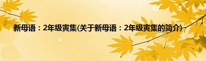 本文关于新母语:2年级寅集的简介就讲解完毕,希望对大家有所帮助。