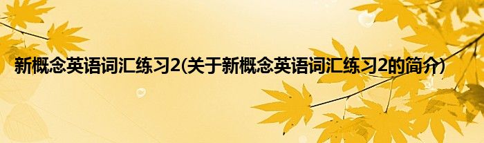 本文关于新概念英语词汇练习2的简介就讲解完毕,希望对大家有所帮助。