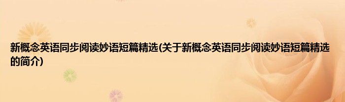 本文关于新概念英语同步阅读妙语短篇精选的简介就讲解完毕,希望对大家有所帮助。