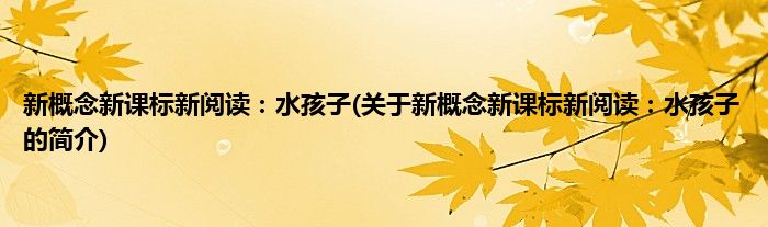 本文关于新概念新课标新阅读:水孩子的简介就讲解完毕,希望对大家有所帮助。