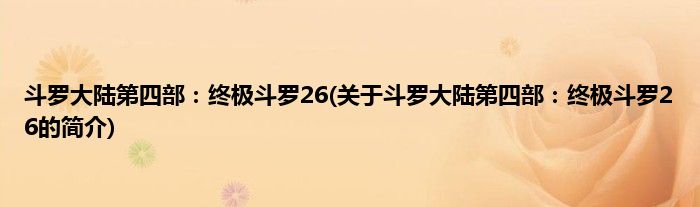 本文关于斗罗大陆第四部:终极斗罗26的简介就讲解完毕,希望对大家有所帮助。