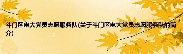 1、 斗门区电大党员志愿服务队是由斗门区教育局党员志愿服务中队领导下的志愿团体,成立于1970年1月1日。