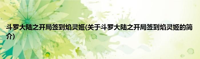 本文关于斗罗大陆之开局签到焰灵姬的简介就讲解完毕,希望对大家有所帮助。