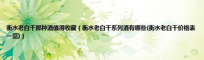 大家好,小科来为大家解答以上问题。衡水老白干那种酒值得收藏,衡水老白干系列酒有哪些(衡水老白干价格表一览)很多人还不知道,现在让我们一起来看看吧!