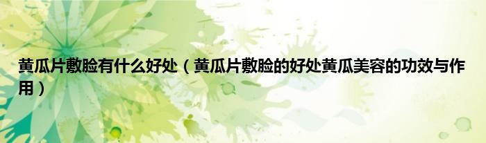 关于黄瓜片敷脸的好处,黄瓜美容的功效与作用