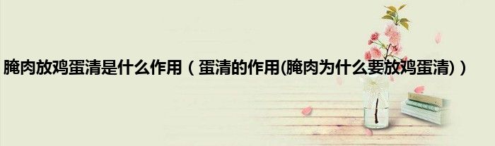 大家好,小科来为大家解答以上问题。腌肉放鸡蛋清是什么作用,蛋清的作用(腌肉为什么要放鸡蛋清)很多人还不知道,现在让我们一起来看看吧!