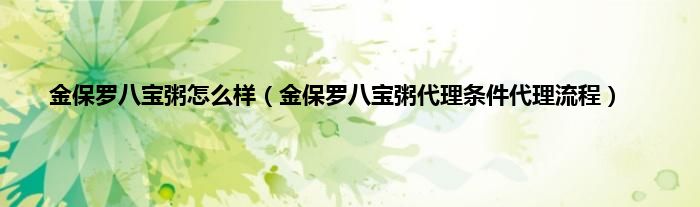 大家好,小科来为大家解答以上问题。金保罗八宝粥怎么样,金保罗八宝粥代理条件代理流程很多人还不知道,现在让我们一起来看看吧!