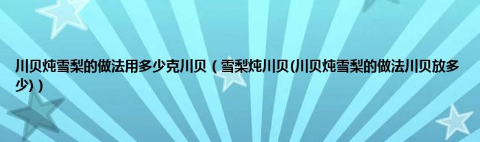 大家好,小科来为大家解答以上问题。川贝炖雪梨的做法用多少克川贝,雪梨炖川贝(川贝炖雪梨的做法川贝放多少)很多人还不知道,现在让我们一起来看看吧!
