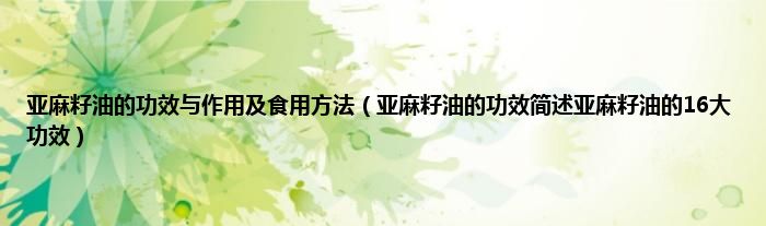 大家好,小科来为大家解答以上问题。亚麻籽油的功效与作用及食用方法,亚麻籽油的功效简述亚麻籽油的16大功效很多人还不知道,现在让我们一起来看看吧!