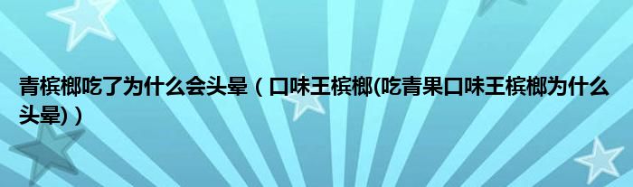 大家好,小科来为大家解答以上问题。青槟榔吃了为什么会头晕,口味王槟榔(吃青果口味王槟榔为什么头晕)很多人还不知道,现在让我们一起来看看吧!