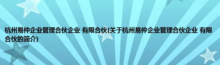 本文关于杭州易仲企业管理合伙企业 有限合伙的简介就讲解完毕,希望对大家有所帮助。