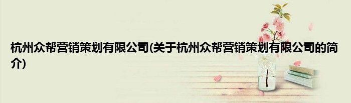 本文关于杭州众帮营销策划有限公司的简介就讲解完毕,希望对大家有所帮助。