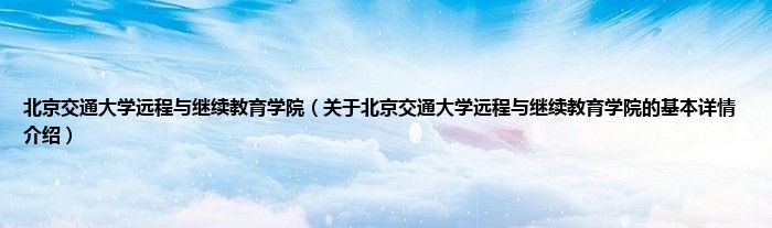 本文关于北京交通大学远程与继续教育学院的基本详情介绍就讲解完毕,希望对大家有所帮助。