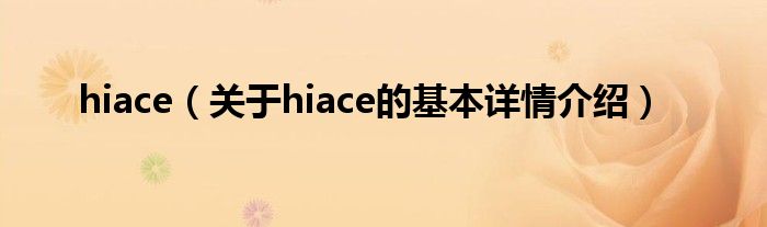 本文关于hiace的基本详情介绍就讲解完毕,希望对大家有所帮助。
