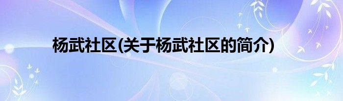 大家好,杨武社区,关于杨武社区的简介很多人还不知道,现在让我们一起来看看吧!