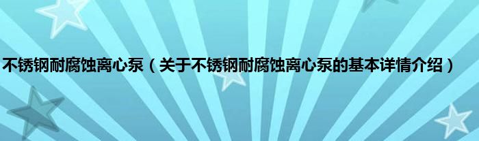 本文关于不锈钢耐腐蚀离心泵的基本详情介绍就讲解完毕,希望对大家有所帮助。