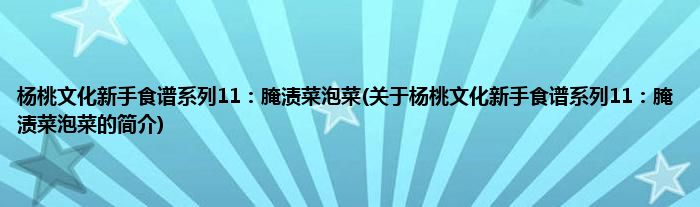 1、 《杨桃文化新手食谱系列11:腌渍菜泡菜》是一本书。