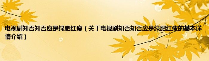 本文关于电视剧知否知否应是绿肥红瘦的基本详情介绍就讲解完毕,希望对大家有所帮助。
