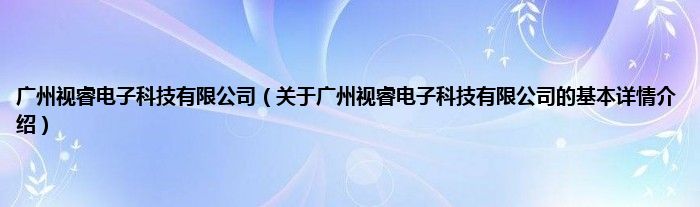 本文关于广州视睿电子科技有限公司的基本详情介绍就讲解完毕,希望对大家有所帮助。