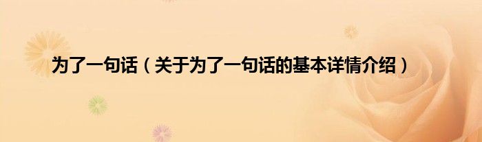 本文关于为了一句话的基本详情介绍就讲解完毕,希望对大家有所帮助。