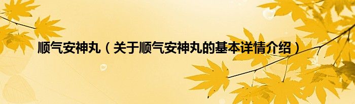 本文关于顺气安神丸的基本详情介绍就讲解完毕,希望对大家有所帮助。