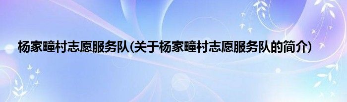 大家好,杨家疃村志愿服务队,关于杨家疃村志愿服务队的简介很多人还不知道,现在让我们一起来看看吧!
