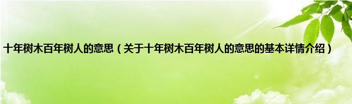 本文关于十年树木百年树人的意思的基本详情介绍就讲解完毕,希望对大家有所帮助。