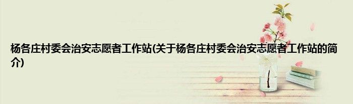 本文关于杨各庄村委会治安志愿者工作站的简介就讲解完毕,希望对大家有所帮助。
