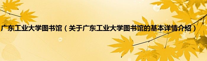 本文关于广东工业大学图书馆的基本详情介绍就讲解完毕,希望对大家有所帮助。