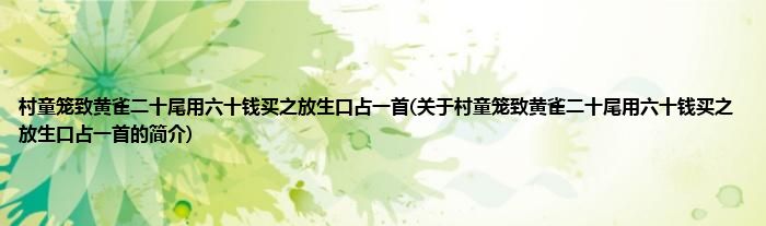 村童笼致黄雀二十尾用六十钱买之放生口占一首(关于村童笼致黄雀二十尾用六十钱买之放生口占一首的简介)