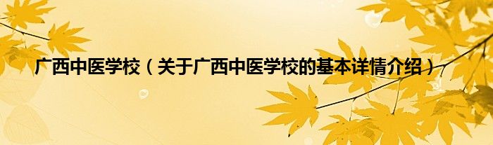 本文关于广西中医学校的基本详情介绍就讲解完毕,希望对大家有所帮助。