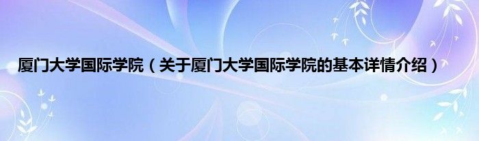 本文关于厦门大学国际学院的基本详情介绍就讲解完毕,希望对大家有所帮助。