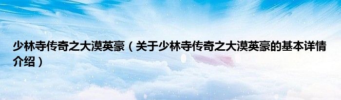 本文关于少林寺传奇之大漠英豪的基本详情介绍就讲解完毕,希望对大家有所帮助。