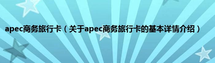 本文关于apec商务旅行卡的基本详情介绍就讲解完毕,希望对大家有所帮助。
