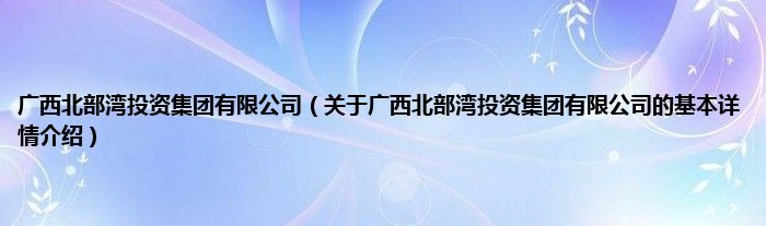 本文关于广西北部湾投资集团有限公司的基本详情介绍就讲解完毕,希望对大家有所帮助。
