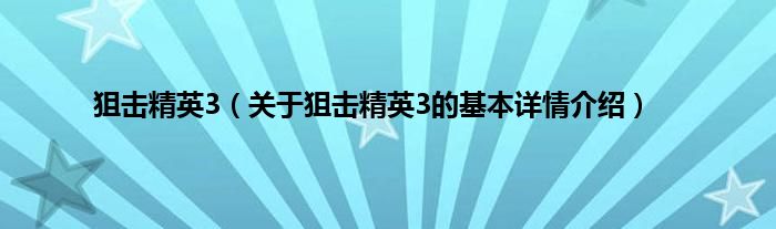 本文关于狙击精英3的基本详情介绍就讲解完毕,希望对大家有所帮助。