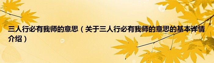 三人行必有我师的意思(关于三人行必有我师的意思的基本详情介绍)
