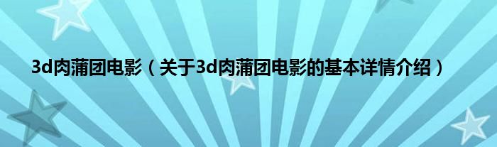 本文关于3d肉蒲团电影的基本详情介绍就讲解完毕,希望对大家有所帮助。