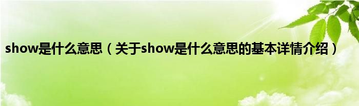 show是什么意思(关于show是什么意思的基本详情介绍)