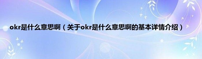 本文关于okr是什么意思啊的基本详情介绍就讲解完毕,希望对大家有所帮助。